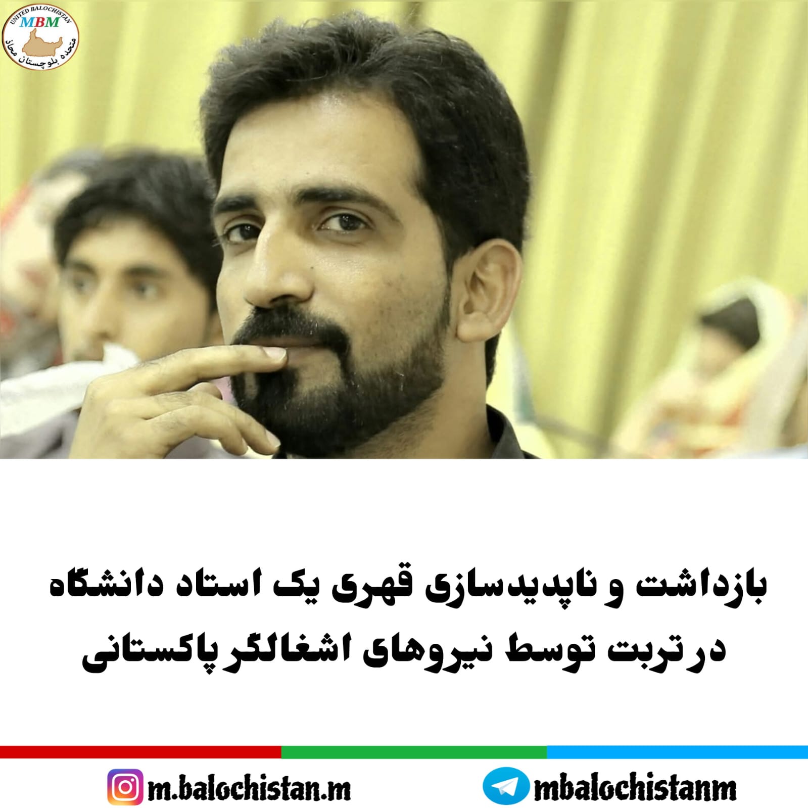 بازداشت و ناپدیدسازی قهری یک استاد دانشگاه در تربت توسط نیروهای اشغالگر پاکستانی