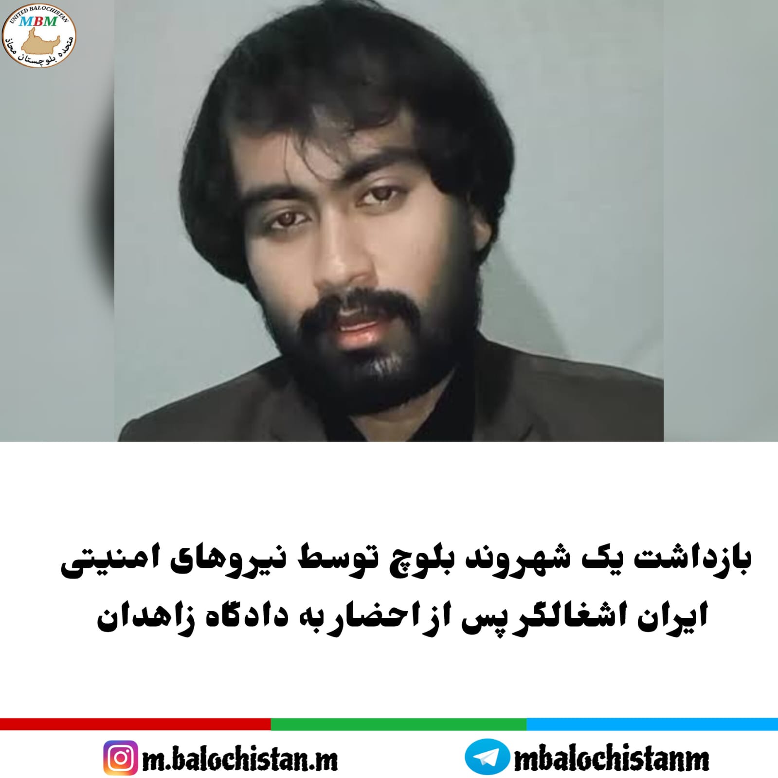 متحده بلوچستان محاذ|روز سه شنبه ۱۱ آذر ماه ۱۴۰۴، یک شهروند بلوچ پس از احضار به دادگاه زاهدان، توسط نیروهای امنیتی ایران اشغالگر بازداشت و به مکان نامعلومی منتقل شده است.