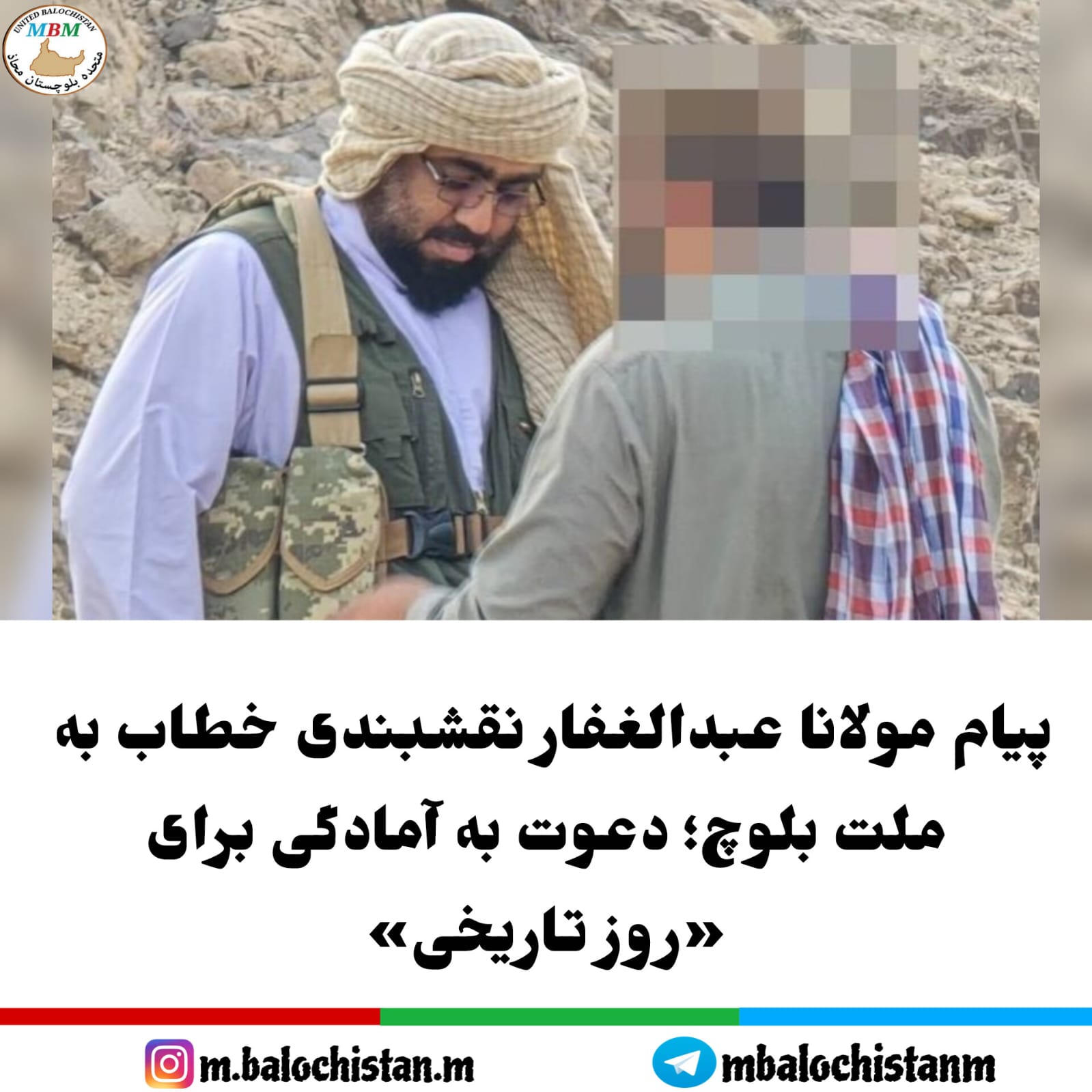 متحده بلوچستان محاذ | مولانا عبدالغفار نقشبندی با انتشار پیامی خطاب به عموم مبارزین و ملت بلوچ، از نزدیک بودن یک «روز تاریخی و سرنوشتساز» خبر داد و مردم بلوچ را به آمادگی فراخواند.