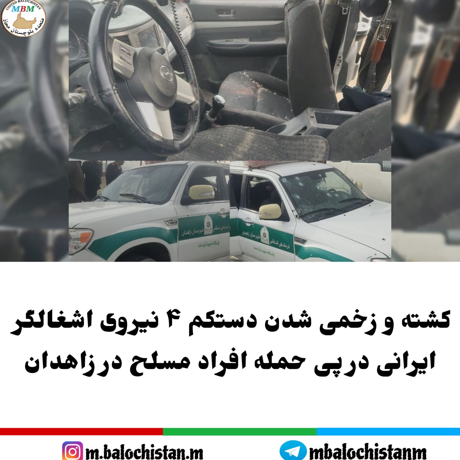 متحده بلوچستان محاذ|امروز سهشنبه ۱۲ اسفند ماه ۱۴۰۴ در پی تیراندازی افراد مسلح ناشناس در زاهدان دستکم یک نیروی اشغالگر ایرانی کشته و سه تن دیگر زخمی شده اند